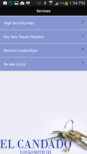 With our app you are able to get a whole new experience when it comes to dealing with a locksmith. Our app allows you to call us with one touch. You are also able to send us a photo of something that you want us to give our attention to. If you're not very clear on our services you can check our list of the great services we provide while commenting or posting your testimonial in the fan wall.