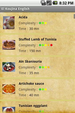 El Koujina (The Cuisine in Tunisian dialect) is an application that provides access to recipes from the Tunisian cuisine. It allows to see the complexity, time, ingredients and reparation steps of each recipe.