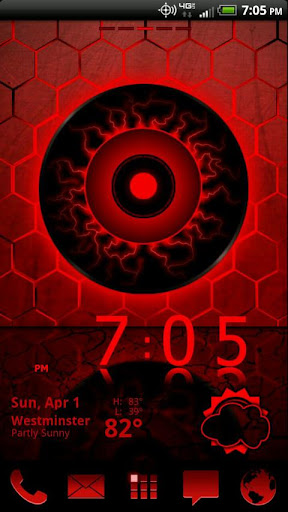 The clock shown is the "Beautiful Home" clock from the "Beautiful Widgets" app. This is a paid app, but well worth the money. The clock skin is "Vos-Reflection Red" with the background set to transparent. The weather skin is "LightWorksRed".