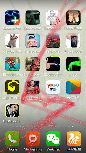 Electric screen, Beautiful coloured lightning strike in your phone. Touch the screen anywhere and you will see bolt of lightning under your finger. You will hear electrical crackling also.