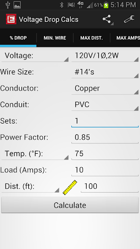 This app is a compilation of five sub apps that use the 2008/2011/2014 National Electric Code (NEC).