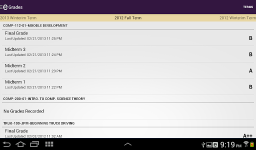 • Grades — Check your midterm and final grades on the go.