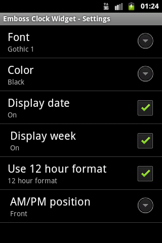 This is an extremely simple digital clock widget (1×2 cells) with embossed effect.
