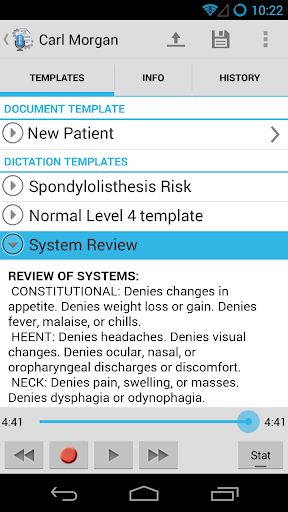 Use your Android device to review your appointment listing, create dictations and submit them to your transcription company, and review and approve transcriptions in your Workflow folders.