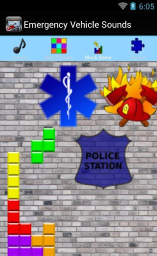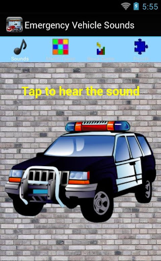 A variety of emergency vehicle sounds are included along with sirens, emergency scanner sounds, and others. Six different images are included in the app. Just tap one of the images to hear the corresponding sound.
