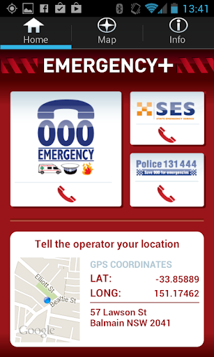 ‘Emergency +’ is a national app developed by Australia's emergency services and their Government and industry partners, helping people to call the right number at the right time, anywhere in Australia. The app uses a mobile phone's GPS functionality so callers can provide emergency call-takers with their location information as determined by their smart phone. ‘Emergency+’ also includes SES and Police Assistance Line numbers as options, so non-emergency calls are made to the most appropriate number.