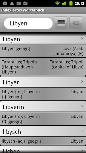 Emilio's Dictionary (formerly GerEng Dictionary) is yet-another free german-english dictionary-app. It is loosely based on other dictionary apps and tries to improve them here and there. Emilio is Open Source and licensed under the GPLv2 You can find the source code of Emilio at https://code.google.com/p/emilios-dictionary.