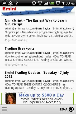 If you have wanted to know more about trading the Emini market, this is the App you need. It will give you some great ongoing education and tips on trading this market - From free articles to Free videos.