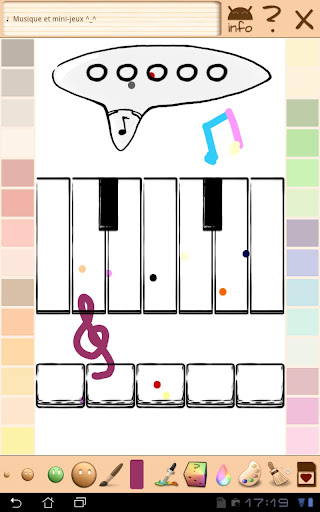 - Et un mini jeu musical, 3 mini-instruments à dessiner qui peuvent réellement jouer des sons.