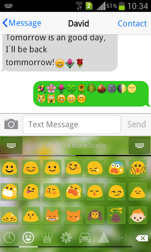 Fresh Green Theme for Emoji Keyboard+: http://goo.gl/bk23s2 , designed by WaveStudio, Getting this cool theme to make your Emoji Keyboard+ more lovely and colorful.