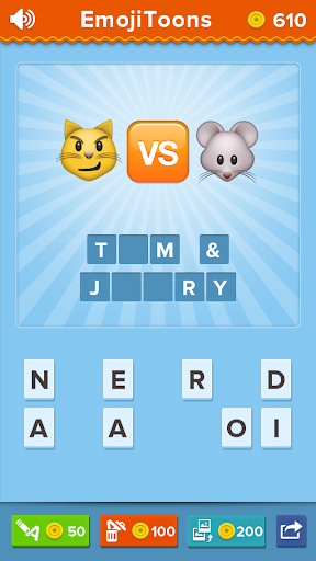 EmojiToons is the most interesting and unique application of emoticon puzzles and charades based on the names of well-known and favourite cartoons that are interpreted with icons. Once you complete the first level, you will understand how entertaining and fun it is. PLEASE NOTE! You can participate in the development of the game! Give your options of puzzles with their solutions in the comments to the application. The best ones will be included in the new version and we will mention you as one of the application authors.