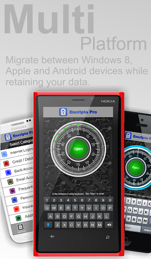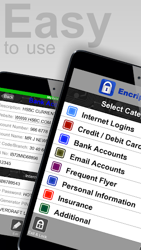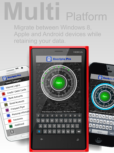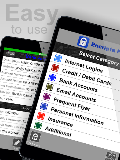 With the rise in popularity of internet shopping and banking, it has become necessary to have multiple passwords and usernames, which are impossible to remember. With Encripta you can confidently save all your passwords, banking access codes, credit card details and internet logins on your mobile device, protected by one master password.