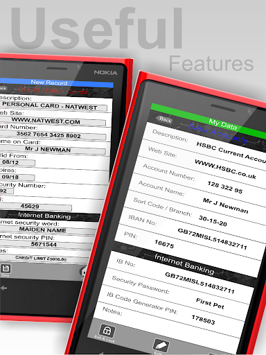 • Private information such as passwords, credit card details, banking information and web logins are stored in a logical and easy to use format with predefined templates for the most popular categories. Additional categories can be easily added to suit your exact requirements.