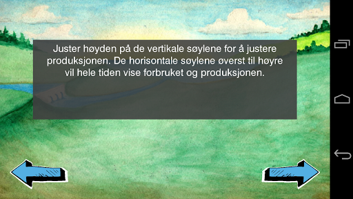 Juster høyden på de vertikale søylene for å justere produksjonen. De horisontale søylene øverst til høyre vil hele tiden vise forbruket og produksjonen.