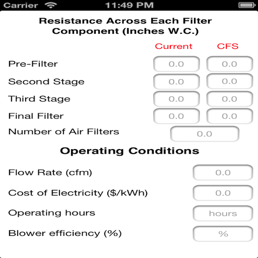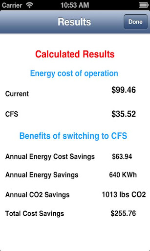 CFS savings calculator is a android base app for calculating the benefits you will get in annual $ savings by using different filters. Filters will help you to save the consumption of electricity as well as your money.
