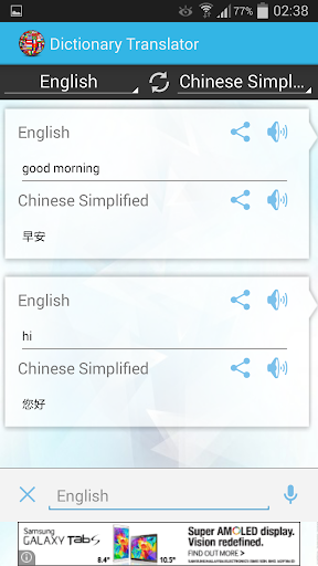 English Chinese translator dictionary is a English to Chinese translation app free for download on Android (this app is also a Chinese English translator dictionary with Chinese to English translation, including voice translator text to speech tts and speech to text as well).