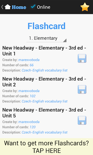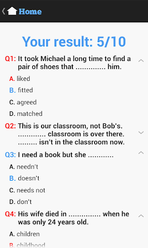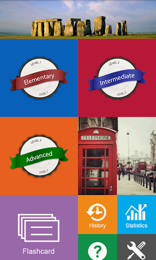 English Grammar Test application also has many flashcards for you. Practice them everyday to improve your vocabulary