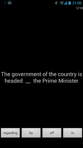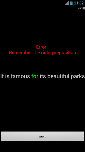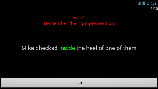 Just fill the gap in the shown sentence with the right English preposition from the list of choices and test yourself.