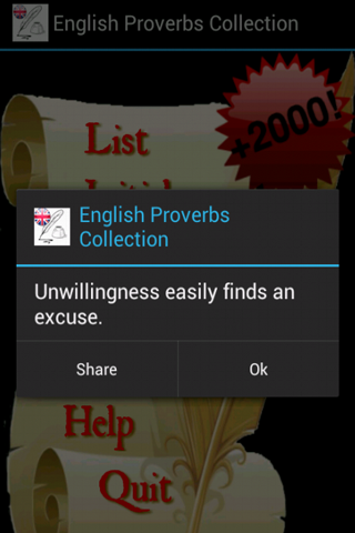-Share with your friends: all the proverbs that you see can be shared via social networks by clicking on the lists for a while, either through the enable button as appropriate.