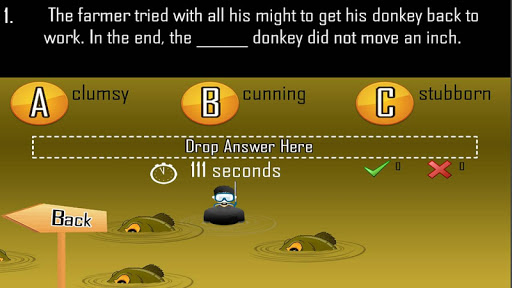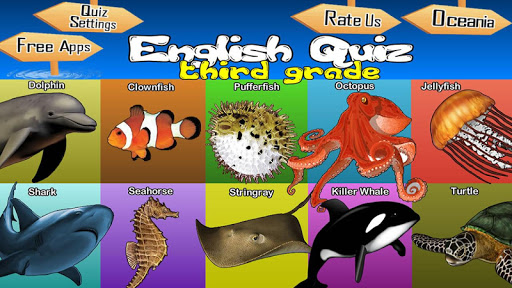There are a total of 300 high quality English questions that are distributed randomly over 10 different Marine animals. The main aim of the app is to encourage the learner to attempt each set of the quiz so that he can collect each of the 15 marine animals in order to populate his very own 3D Oceania. The adult or teacher can adjust the level of difficulties such as the quiz duration/passing score to cater to the varying needs of the learner. The marine animals serve as a source of motivation and end goals to encourage the young learner to keep on practicing the quizzes.