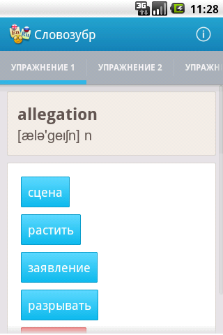 The exercises contains both simply and complicated words, that is why learning russian with that app would be interesting for people with different knowledge of the language. If the user has already mastered a word, he may easily exclude it from training with one click.