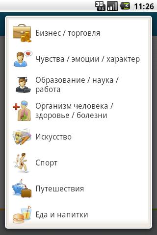 This application is a small Russian English dictionary, where words from different areas are depicted. All you need is to run the application and select the category, words from which you would like to study.