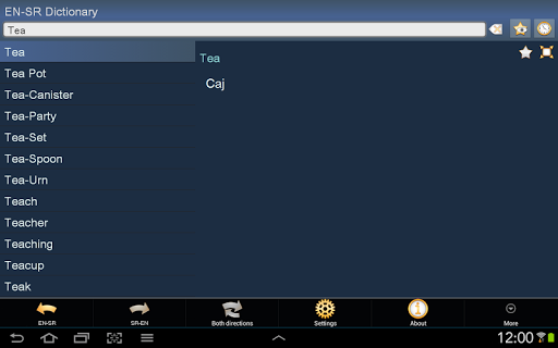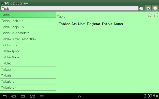 This is English - Serbian and Serbian - English Dictionary (Englesko-Srpski i Srpsko-Engleski rečnik), containing 69000 translation articles. The Dictionary is OFFLINE and does not need the internet connection.