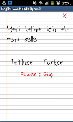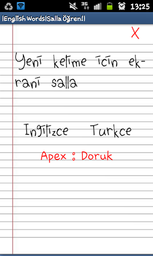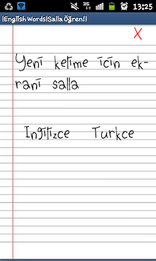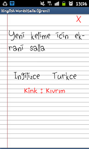 elefonu her sallayışta ekrana farklı bir İngilizce kelime ve Türkçe karşılığı gelmektedir.