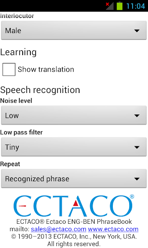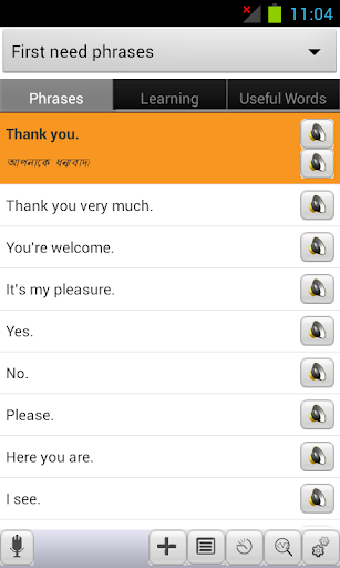 ECTACO Talking Phrasebook English–Bengali and Bengali–English for Android provides instant bidirectional translation of thousands of practical and useful phrases. It replaces bulky and inconvenient books and speaks all of its phrases aloud using clear, understandable native speaker voice narration for both languages. With it you will always be understood – even if you can't speak a word of another language.