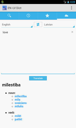 English<->Latvian DictDroid is "offline dictionary" (doesn't require internet connection) with features: