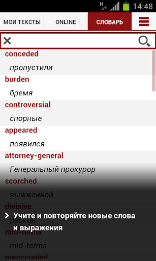 Бесплатная версия приложения не содержит рекламы, ограничивает максимальное количество сохраняемых слов до 20