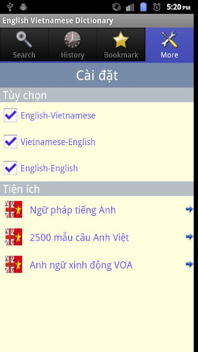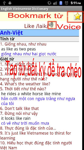 Supper Dictionary(no need to connect to internet) three in one English-Vietnamese dictionary, Vietnamese-English dictionary, English-Enghlish dictionary. This dictionary contain about over 330,000 words and mp3.