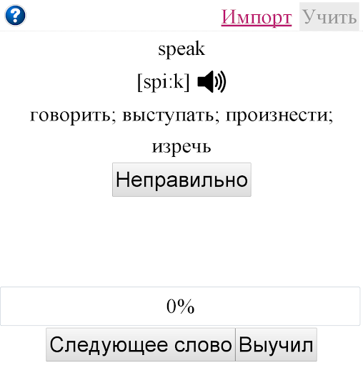 Когда все слова выучены показываются только те слова на которые чаще всего давался не правильный ответ.
