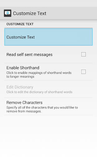 • Easily configure what to read, like sender name, brief overview or even the full message.