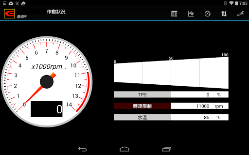 ·我可以查看轉速表和實時節氣門開顯示器和水溫。