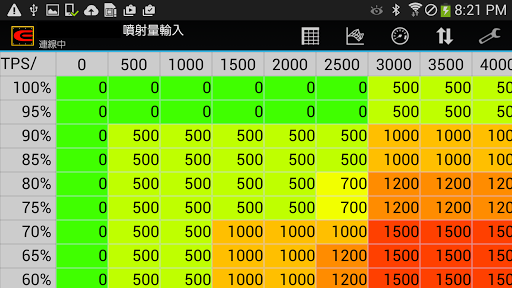 •燃料地圖,可以顯示當前的發動機轉速,實時節氣門位置。