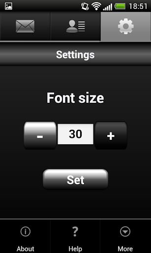 With this app you can adjust the text size and you can view the contact details and SMS within the app without any strain on your eyes.