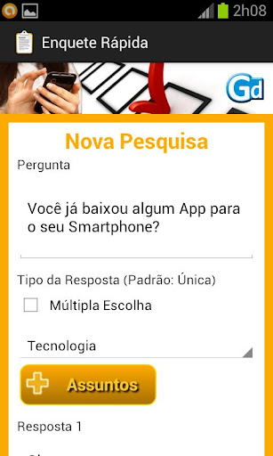 Aplicativo de Pesquisa para criar pequenas enquetes com até 6 alternativas de resposta. Útil para avaliar se um produto e/ou serviço está atendendo as expectativas do cliente.
