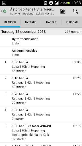 Med Equipe Realtid blir upplevelsen komplett, följ tidtagningen av ekipaget som är på banan i realtid. Är det dressyr, och det sker poänginmatning hos varje domare kan du följa poängen per bedömningsgrupp och se det fullständiga protokollet i efterhand.