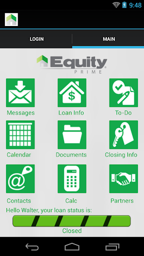 Equity Prime offers mortgage customers a unique way of communicating and interfacing with their realtor and loan officer. The app can easily provide loan information and status, have push notification reminders for important dates (appraisal, closing, rate lock etc.), initiate a chat, provide all the essential details of the loan process, Mobile Capture Technology to securely upload documents, and allows consumers the ability to view and download loan documentation (approval, appraisal and closing docs).