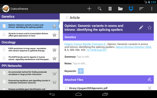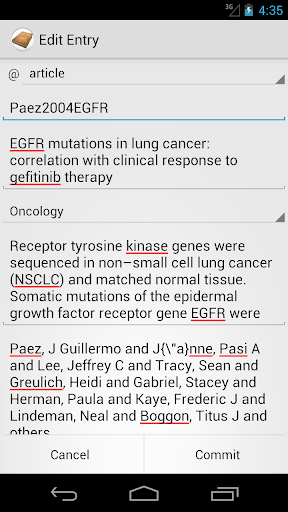 - Automatically import citations from multiple web services and journals, with android browser integration