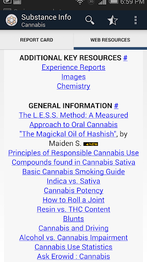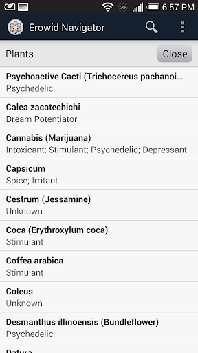 The new Erowid Android browser, for easy access to information about psychoactive plants, drugs and other substances. Topics can be searched through the application and the information can be viewed in the application or through a browser of choice. Pages can be saved for offline access.