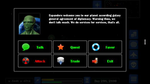 -Trade resources with the aliens and complete quests. Receive favors in return.