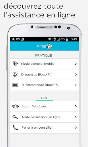 ASSISTANCE APPLI : pour tout problème avec l’application, contactez-nous via le forum http://www.forum.bouyguestelecom.fr en mentionnant « Appli Espace Client Mobile » dans l’intitulé de votre question. Nos clients et la communauté des experts Woobees répondront à toutes vos demandes.