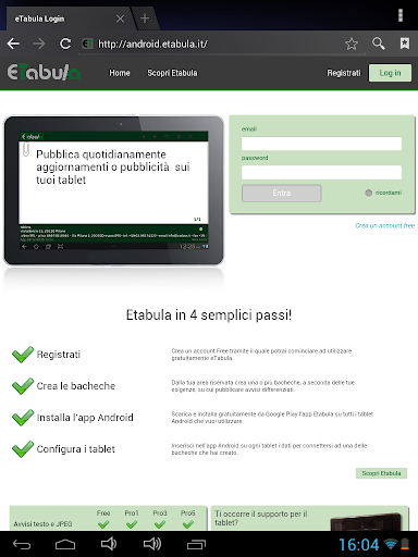 Crea il tuo account Etabula gratuitamente vai al link http://android.etabula.it/register.zul