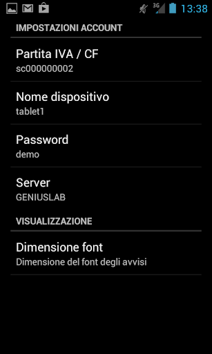 Inserisci nell'app Android su ogni tablet i dati per connettersi ad una delle bacheche che hai creato.