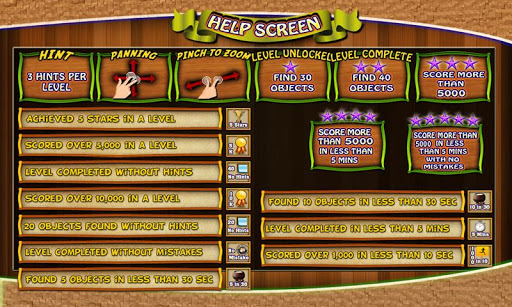 Each level features 10 distinct achievements to unlock (40 in total for the app), and 40 meticulously well-hidden objects to find (160 in total for the app).