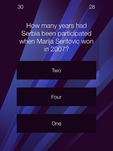 Welcome to the best Eurovision Song Contest Quiz!!. In this app you will challenge your Eurovision knowledge by answering hundreds of questions with an increasing difficulty. Created by Eurofans for Eurofans!!