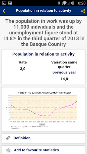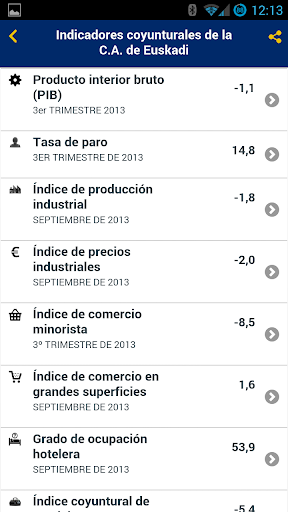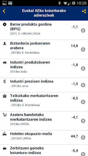 La aplicación de Eustat (Instituto Vasco de Estadística) ofrece información actualizada de 10 datos básicos, 14 indicadores coyunturales clave y la población de los municipios de la C.A. de Euskadi.
