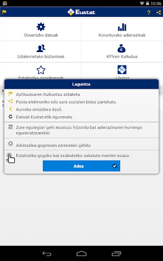 Eustaten (Euskal Estatistika Institutua) aplikazioak informazio eguneratua ematen du Euskal AEko 10 oinarrizko daturi, 14 koiunturako giltzarri-adierazleri eta udalerrietako biztanleei buruz.